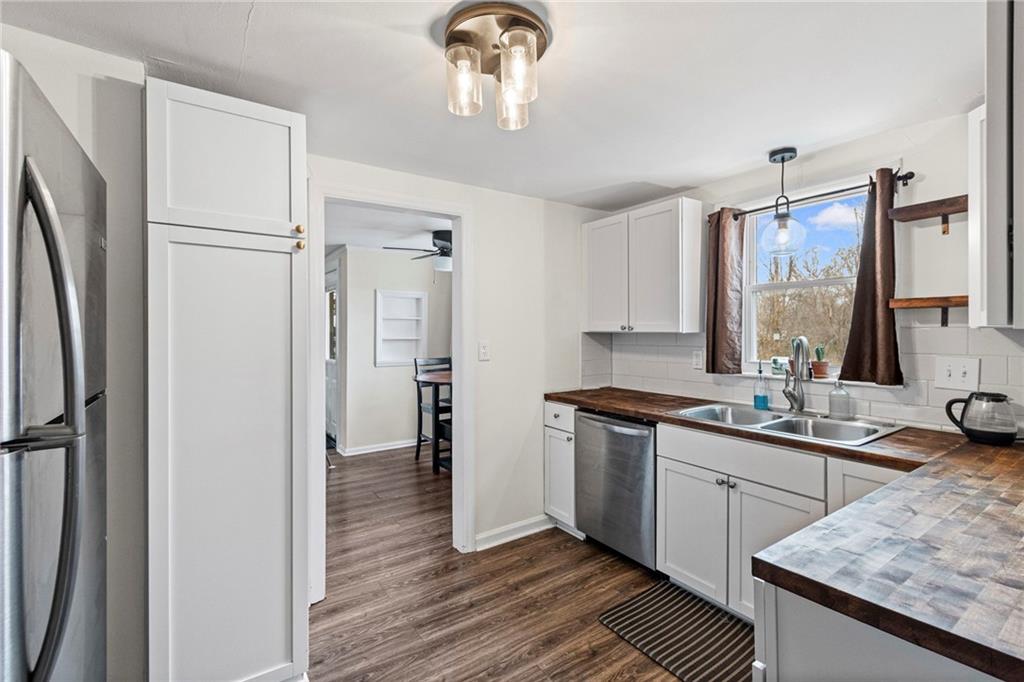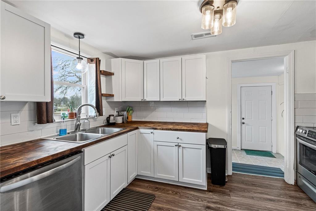Well kept ranch home updated within the last 5 years. Home sits near the end of a dead-end street and is conveniently located within walking distance to schools, grocery store, restaurants, banks and gas stations, with quick highway access for any commute. This home features a nice open layout, LVP flooring throughout, updated cabinetry, a fenced yard, attached garage that leads into the laundry area/mud room and more.