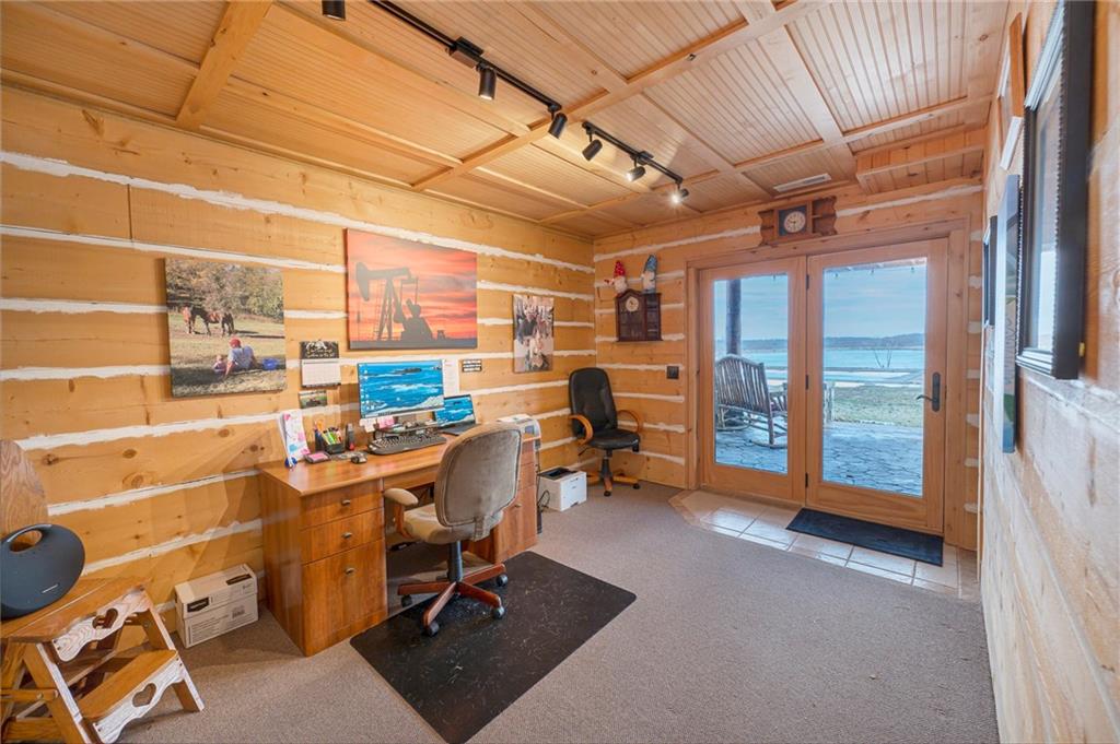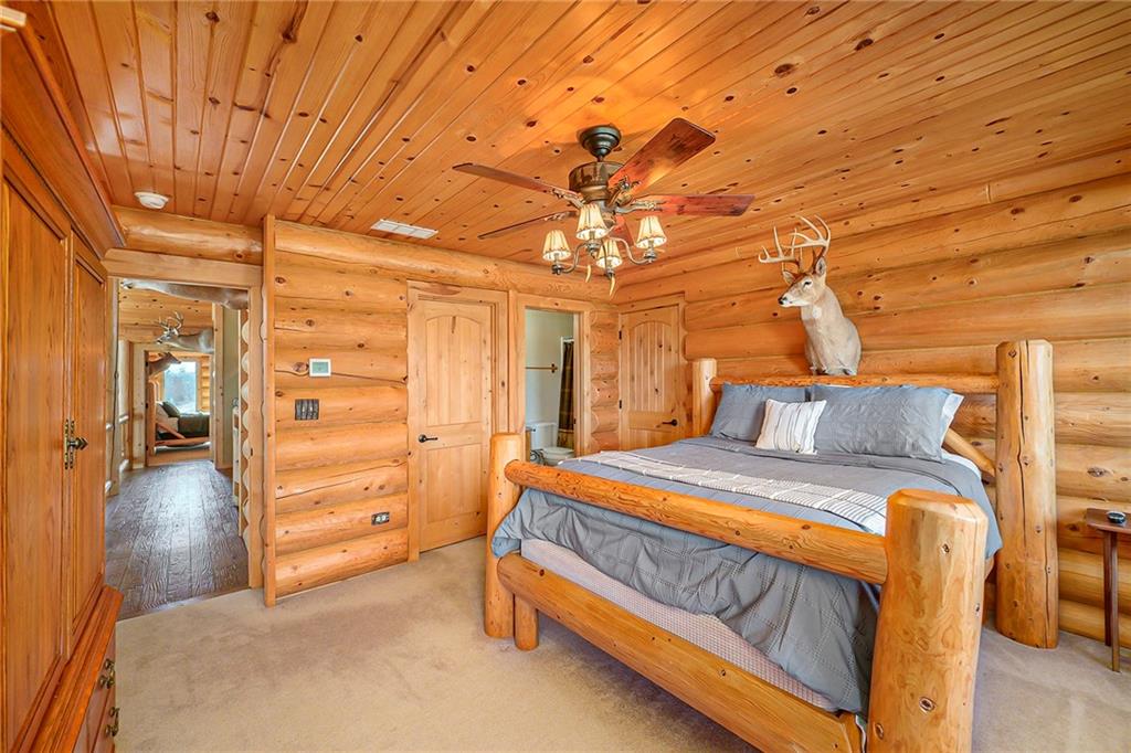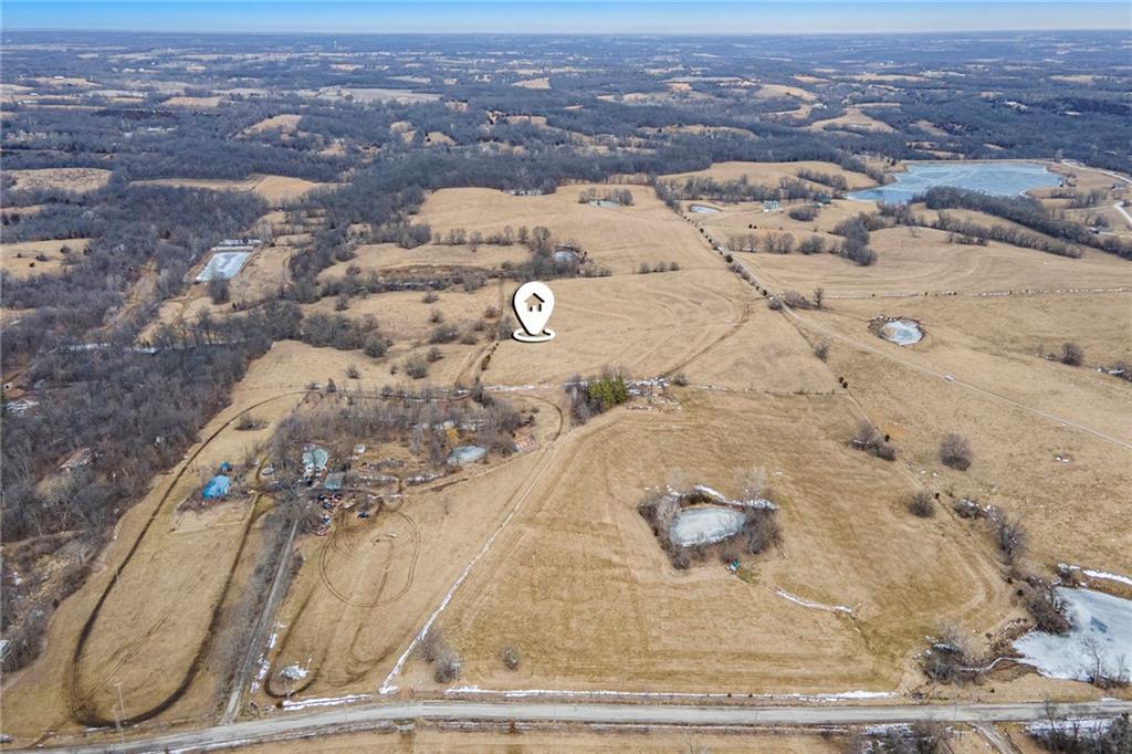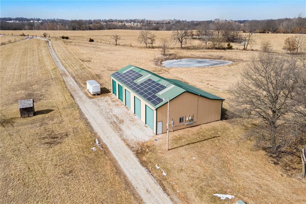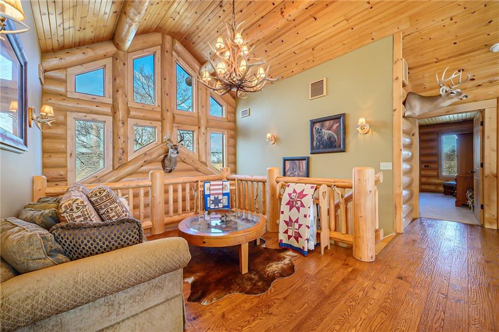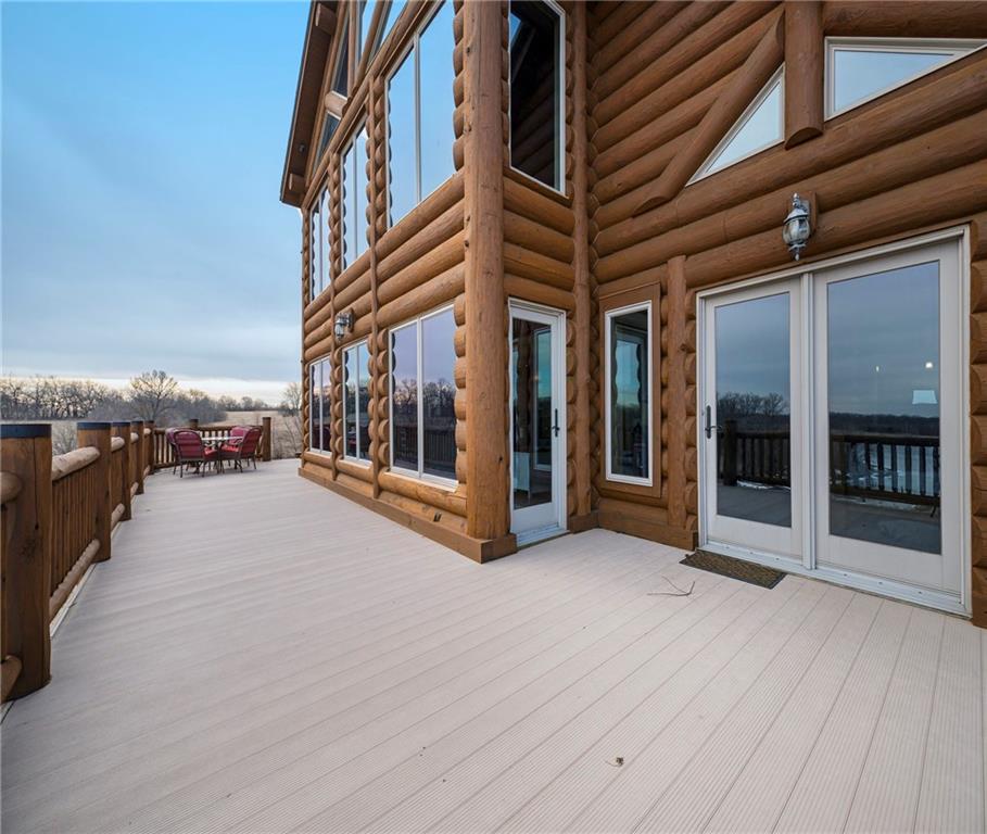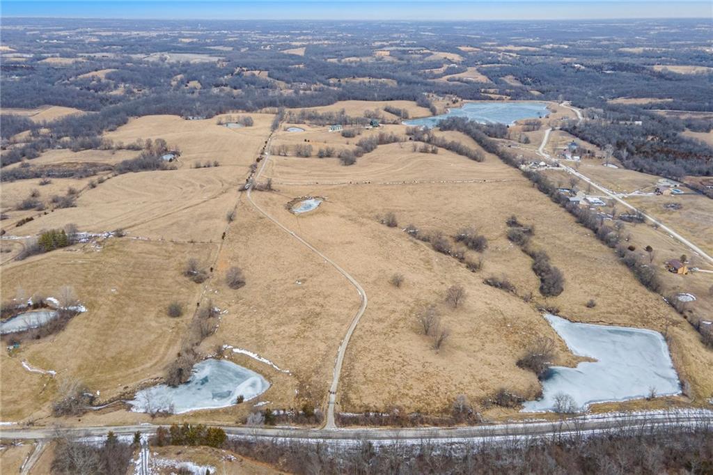 STUNNING CUSTOM LOG HOME located on 67+/- acres FULLY FENCED & cross fenced featuring a GORGEOUS LAKE!! 40x98 OUTBUILDING & lean to w/solar panels. PASTURE GROUND for your LIVESTOCK & HAY PRODUCTION along with timber. This RURAL RETREAT offers loads of RECREATIONAL OPPORTUNITIES for you and your family! The 4 bedroom 4.5 bath home offers an OPEN PLAN perfect for entertaining! CHEF'S KITCHEN features HUGE ISLAND, granite tops, CUSTOM CABINETS w/roll outs, pantry, dining space & more! SOARING CEILINGS & so many windows to take in the VIEWS! Main level primary suite w/SITTING ROOM & BEAUTIFUL STONE FIREPLACE! Don't miss the spacious laundry and mud room space for convenience. The upper level has 2 SECONDARY BEDROOMS with their own PRIVATE BATHS, walk in closets and balconies. The LOFT SPACE overlooks the EXQUISITE GREAT ROOM, STONE FIREPLACE and WALL OF WINDOWS! Finished walk out LL has the 4th bedroom & full bath, 16x8 SAFE ROOM, bonus room, REC ROOM W/3RD stone fireplace and WET BAR and 2 storage spaces. RELAX and watch the SUNSETS & WILDLIFE from the low maintenance deck overlooking the SALT WATER IN GROUND POOL & LAKE! This is a ONE OF A KIND meticulously maintained property 30 minutes from Kansas City. Square footage, acreage, schools, taxes, etc are approximate...buyer and buyer's agent to verify